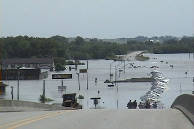 Downtown Columbus Junction is dry; National Guard continued work Sunday.