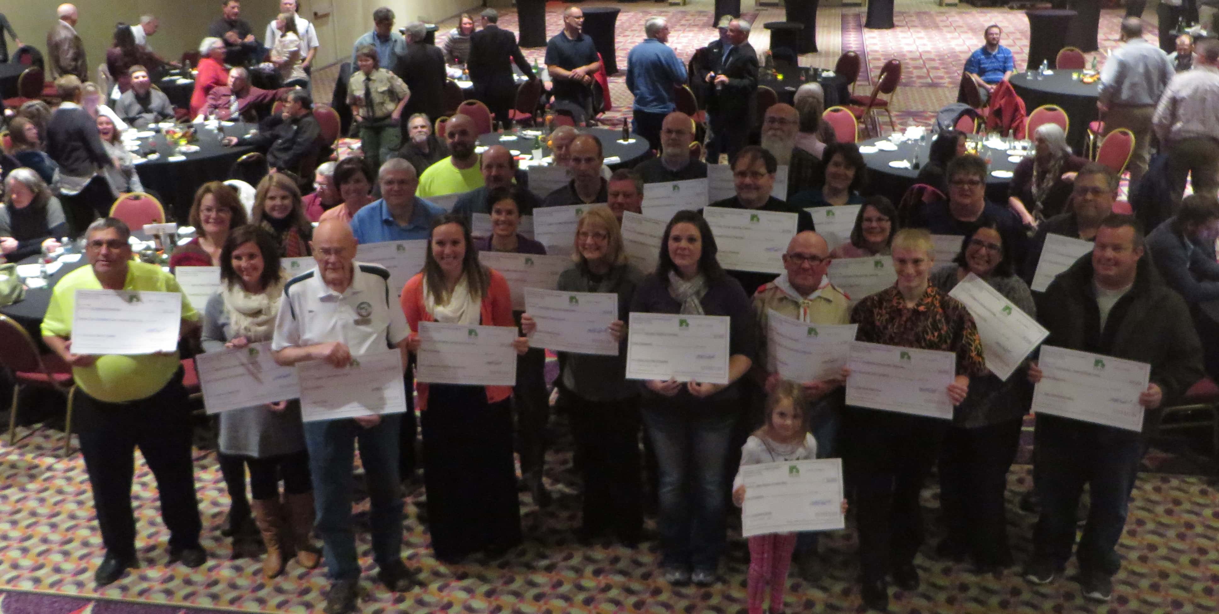 Fall 2015 grant recipients pose for a photo with their checks following the grant distribution ceremony. Photo by Sally Hart