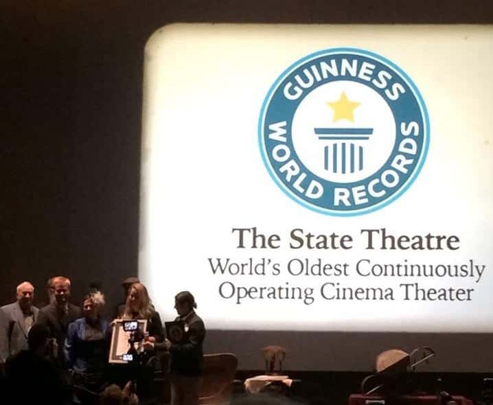 Sunday local historian Michael Zahs presented early moving pictures and magic lantern slides to a sold out crowd at the State Theater in downtown Washington, which is now, officially, the world’s oldest continuously operating cinema. Evelyn Carrera, official representative of Guinnes World Records said she was glad to be in Washington to recognized something amazing. She adds about a year of research went into finding evidence as to how long the theater was in operation, from a variety of source including newspaper clippings.