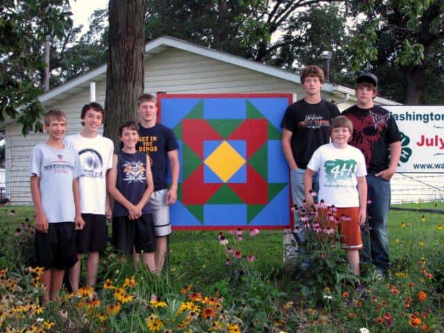 Contributed photo. Pictured are members of the Franklin Cubs 4-H Club in 2008 with the barn quilt they painted called “State Fair” located on the north gate at the Washington County Fairgrounds.