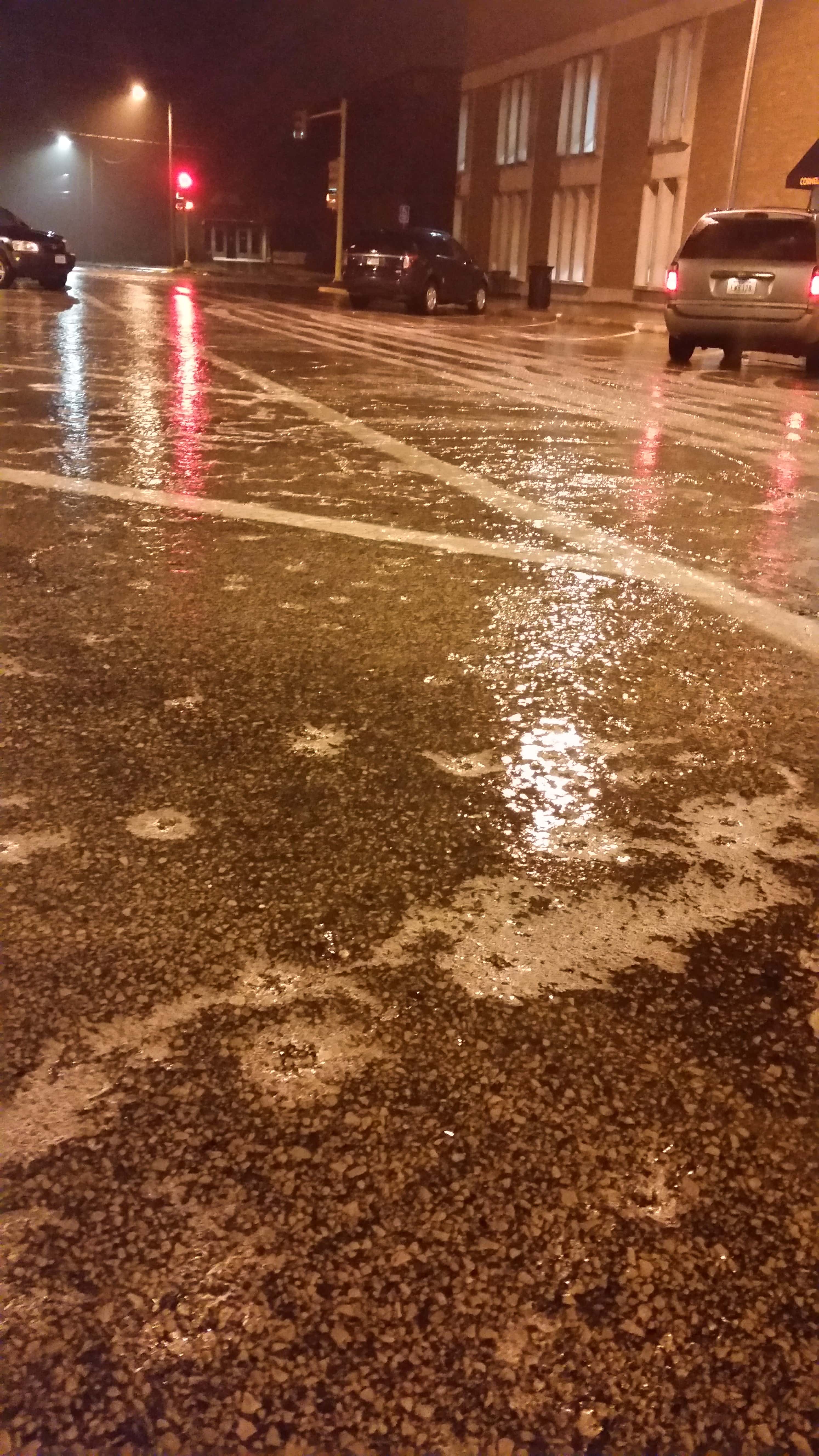 Main Street in downtown Washington was covered with ice at 6 a.m. Monday. Photo by Sally Y. Hart