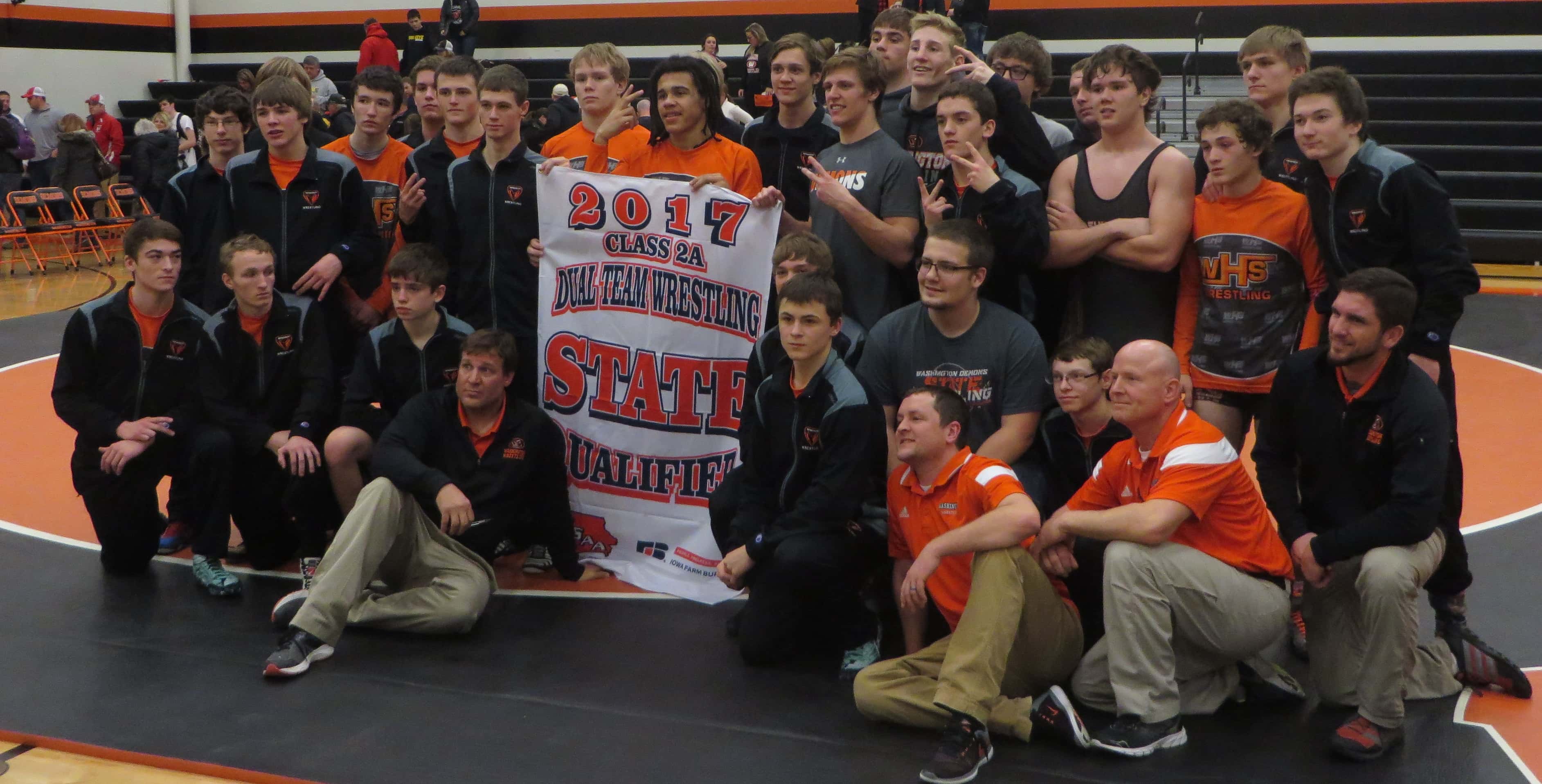 The Washington Demon wrestling team is advancing to the state tournament. As heard live on KCII, the Demons won the regional tournament Tuesday evening. They’ll now wrestle in the state dual tournament, their second year in a row advancing to the Des Moines tournament. The state dual wrestling tournament will be held next Wednesday. Listen to KCII Sports for details from Tuesday’s victories and visit KCII Radio’s Facebook page for photos.