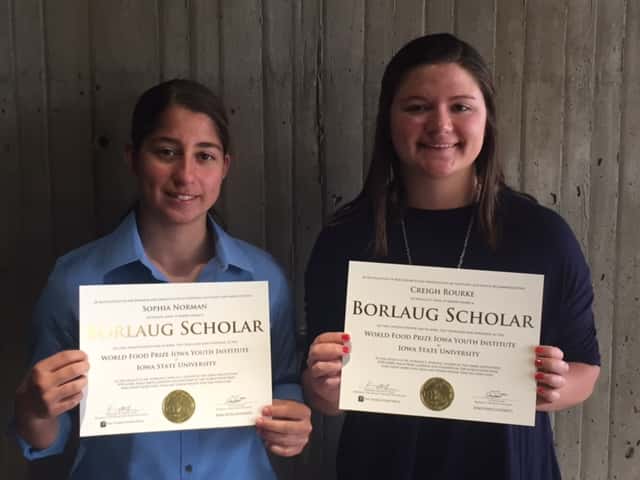 Sophia Norman and Creigh Rourke were named as Borlaug Scholars for their participation in the World Food Prize Iowa Youth Institute.