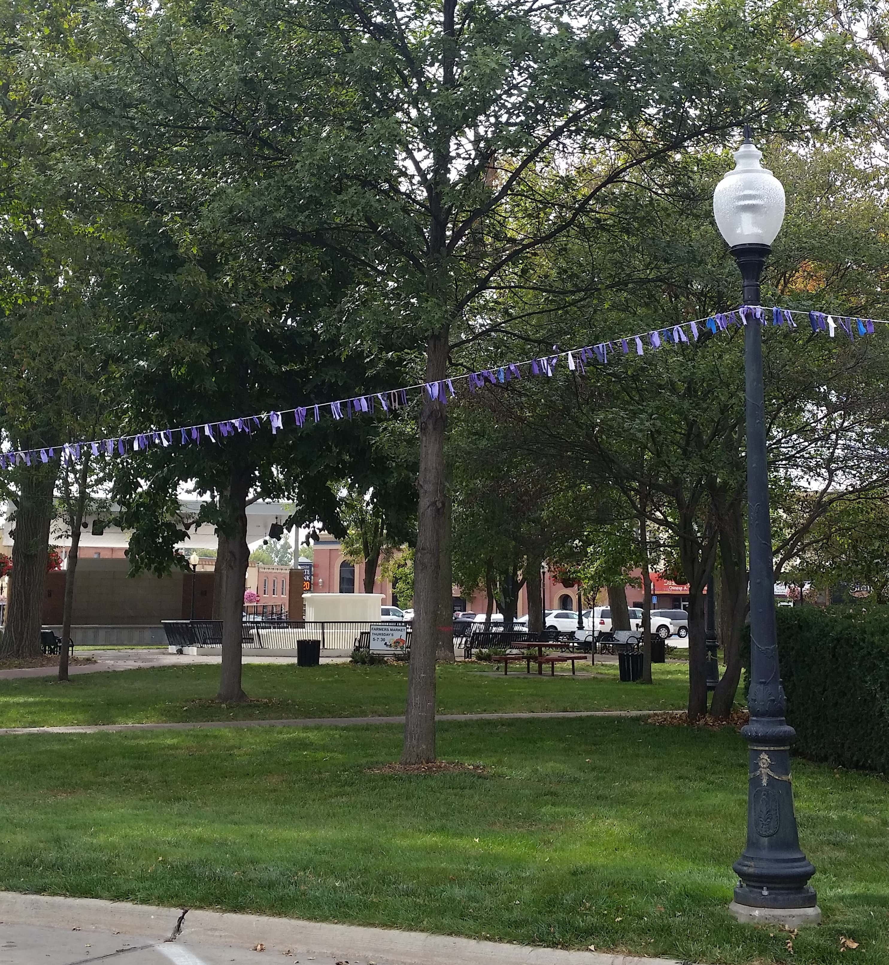 Ribbons stretch around the light posts of Washington’s Central Park. Photo by Sally Y. Hart – KCII