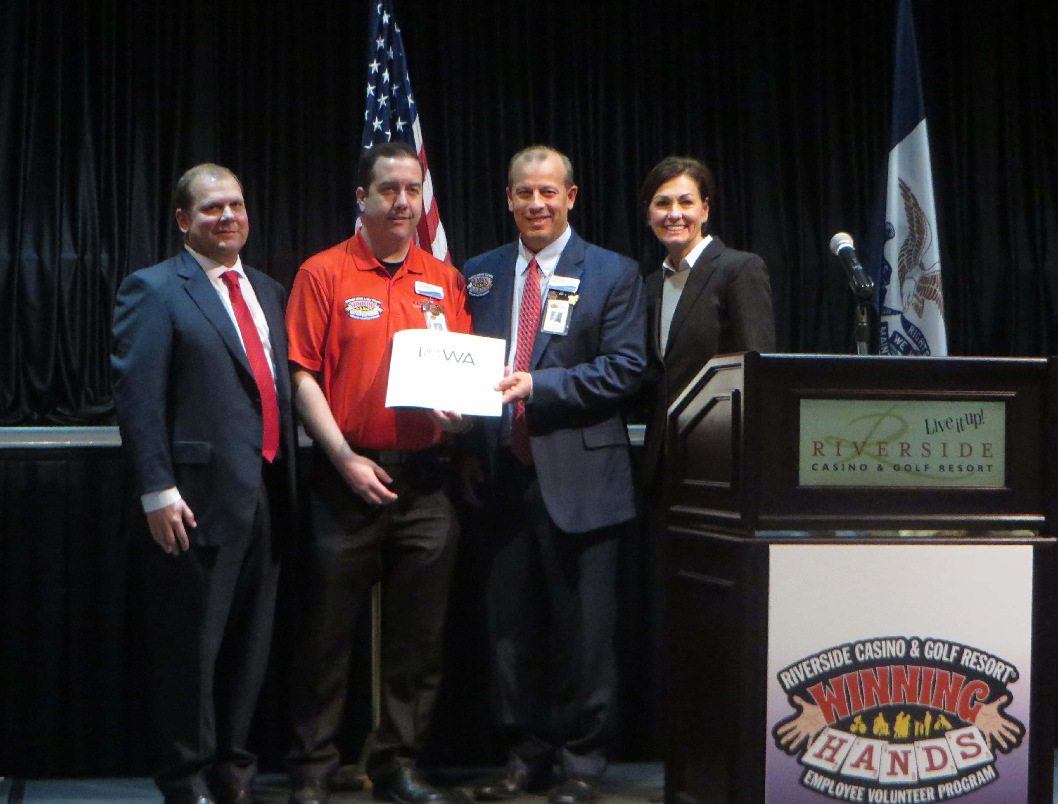Riverside Casino and Golf Resort receive 2016 Give Back Iowa challenge award from Governor Kim Reynolds. Photos by Sam McIntosh.