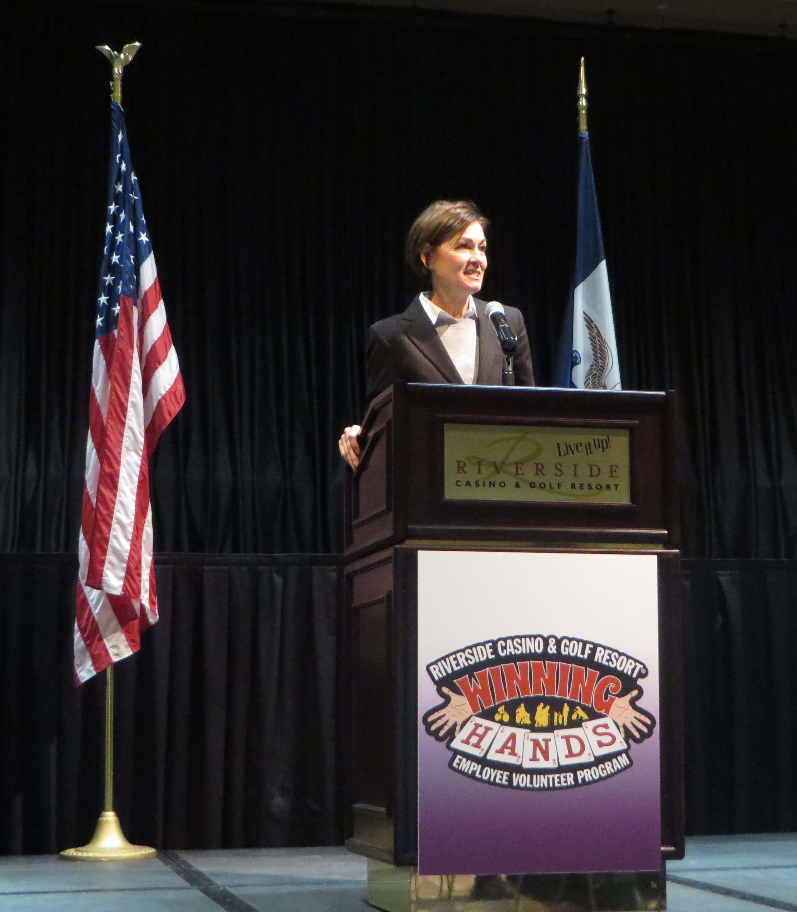 Governor Kim Reynolds and Lt. Governor Adam Gregg visited the Riverside Casino & Golf Resort Wednesday to recognize their staff’s volunteering efforts.