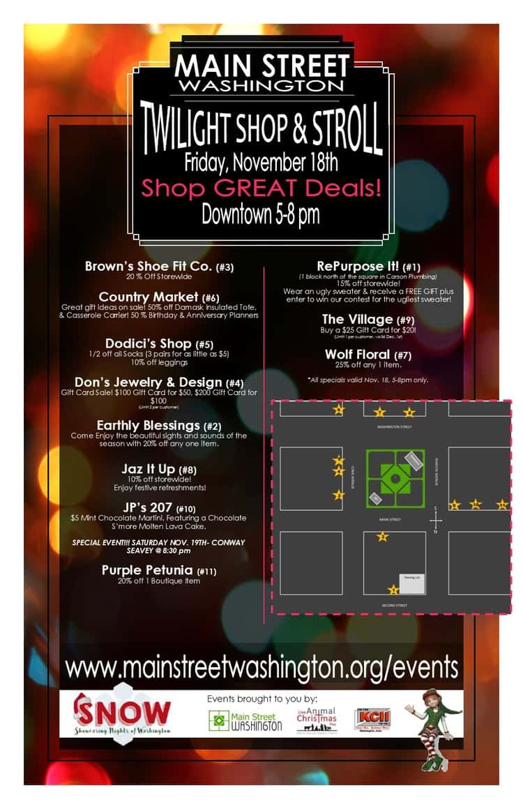 Main Street Washington’s Twilight Shop and Stroll will be held Friday, November 17th. The special holiday shopping event means 11 businesses around the square will be open until 8 p.m. Grunewaldt explains each will have a holiday special or a store special on a specific product, “And really it’s a way for people to kick off their holiday shopping a little bit early, get in before the crowds get in. But also really see what beautiful and wonderful things we have in our stores in downtown for gifts, as well as home decor.”
