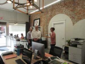 Loebsack toured the offices and met with the staff of Knee Deep Solutions, LLC, a business that provides solutions related to manure management planning for farmers and their swine operations. Owner Rachel Rinner shares how Knee Deep Solutions started, “My company started about 12 years ago. At the time my husband’s barn needed a manure management plan so I started with his and it kind of just [was] word of mouth, it’s just kind of grown ,‘Hey, I heard you did one, can you do mine?’ And it’s slowly grown as my kids went to school I went to full time and then I started hiring people and it just continues to grow slowly. But it’s all been word of mouth which is what we love because it means we’re doing really good work.”