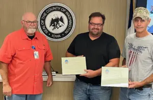 Earlier this month the Supervisors acknowledged two other employees, Road Superintendent John Wagner, and Secondary Road Equipment Operator Jeff Bell. They each have worked at the county for 30 years.